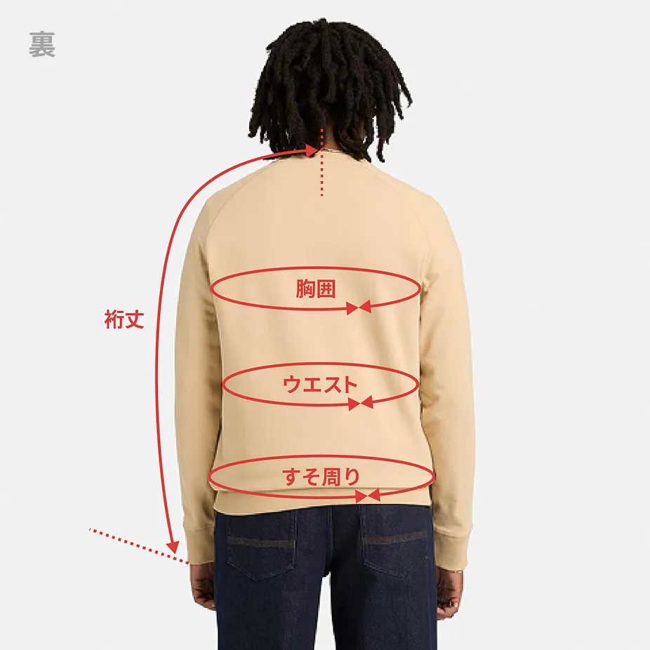 ティンバーランド公式オンラインショップの商品は以下の表示にしたがって、独自の採寸方法により採寸されています。